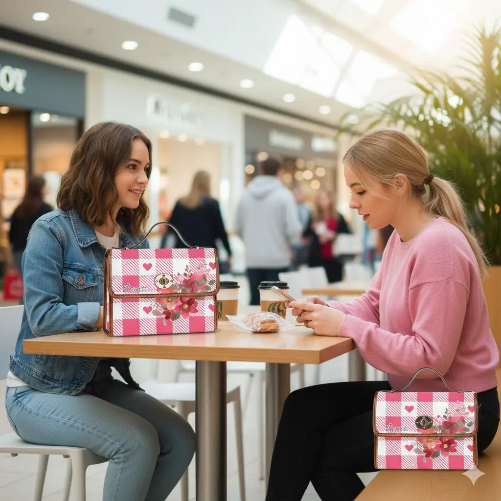 Personalized Waterproof Canvas Shoulder Strap Bag Tartan Vintage Flower