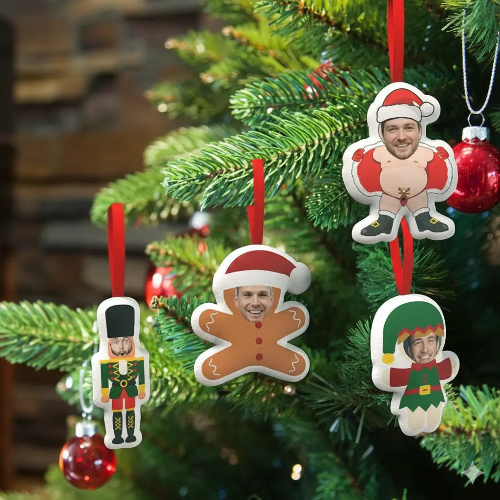 Add a cheerful and playful touch to your festive décor with our Custom Santa and Elf Hanging Decorations — personalized face ornaments that turn you and your loved ones into the stars of Christmas fun!
