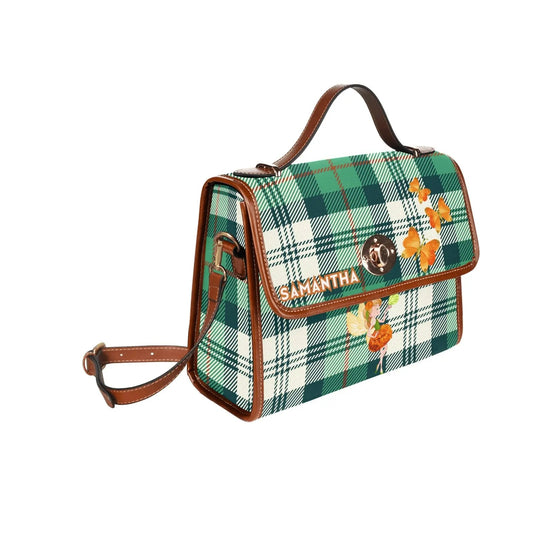 Personalized Waterproof Canvas Shoulder Strap Bag Tartan Butterfly